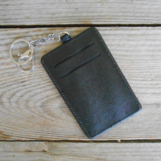 Black and White Checkered Credit Card ID Holder with Key Ring and Clip